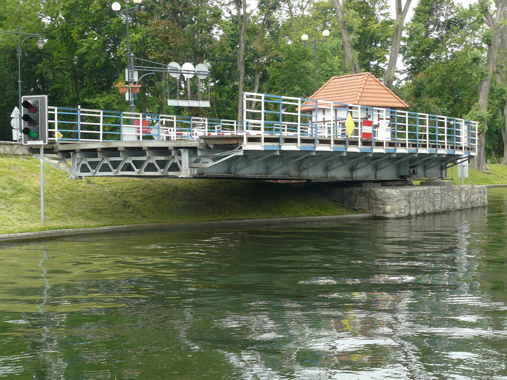 zabytkowy most z XIX w. – jedyny tego typu most w Polsce i jeden z kilku w Europie. Most obrotowy otwierany jest dla jachtów kilka razy w ciągu dnia. Most otwierany jest ręcznie przez jednego operatora, a operacja otwierania mostu zajmuje około 5 minut